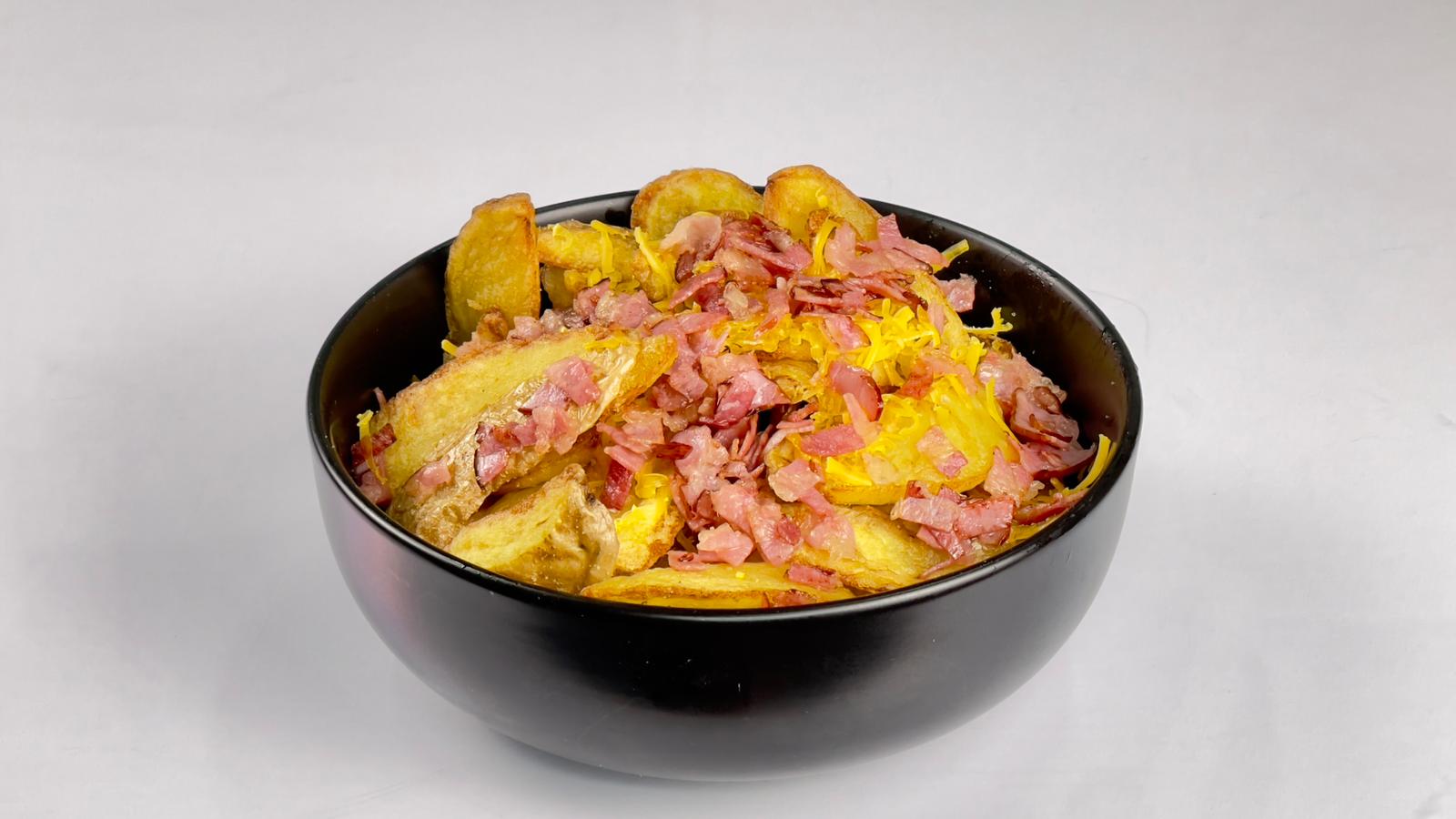 🍟 Comandă Cartofii Prăjiți cu Bacon și Cheddar și bucură-te de o combinație clasică, intens aromată și irezistibilă.