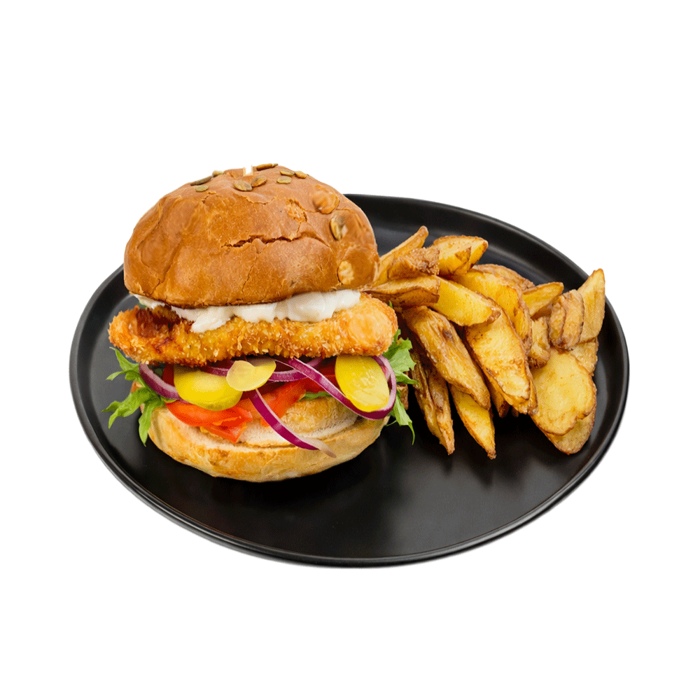 -este alegerea ideală pentru cei care caută un preparat gustos, echilibrat și sățios. Acest meniu combină un burger de pui fraged cu ingrediente proaspete și atent alese, pentru un gust plin și o experiență completă.